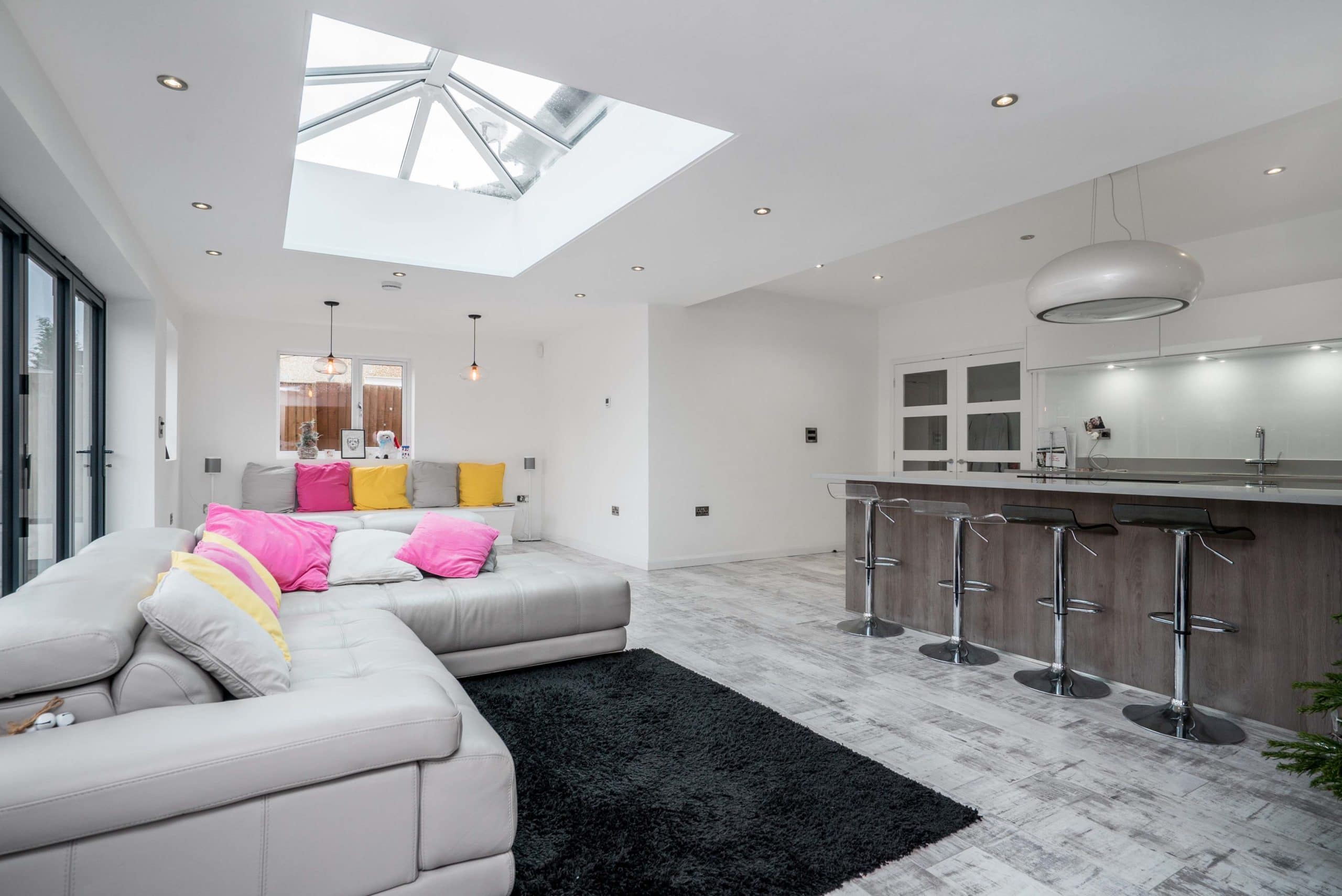 Lets take a look at the photo above. Without the lights on, the kitchen and dining rooms at the back would appear very dark compared to the bright lounge in the foreground. The dining room light is quite yellow which discolours the room slightly, but it’s a necessary trade off in this example. We’ve chosen to put the ceiling lights on in the lounge too, simply because they’re a nice feature and there’s so much natural light they’re not comparatively bright enough to cause any yellow discolouration. However, if the lounge lights were causing a yellow tint, we would have left them turned off.
