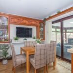 (Maximum measurements). Feature brick base with double glazed windows to side and rear aspects, sliding patio doors to garden, radiator, smoothed ceiling with pin spot downlighting and glass lantern, internal door to garage.