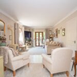 Feature log burning stove, double glazed lead light effect window to side aspect, double glazed lead light effect double doors to front aspect, double doors to study / sitting room, radiator, coved and smoothed ceiling.