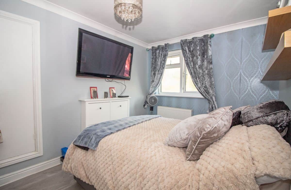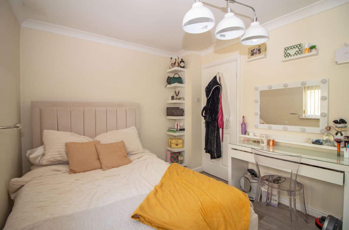 Double glazed window to rear aspect, fitted wardrobe cupboard, radiator, laminate wood effect flooring, storage cupboard, coved and smoothed ceiling.
