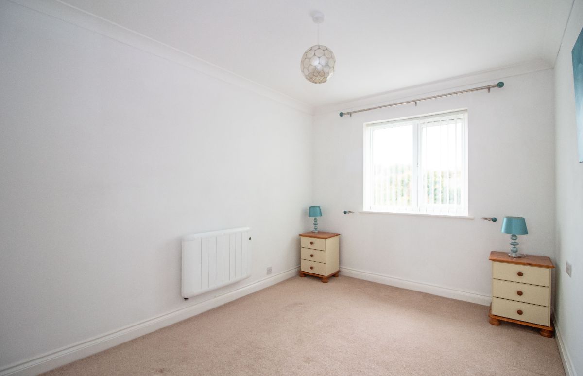 Double glazed window to rear aspect, mirror fronted fitted wardrobe cupboard with shelving and hanging rail, wall mounted electric heater, emergency alarm pull cord, coved and smoothed ceiling.