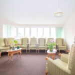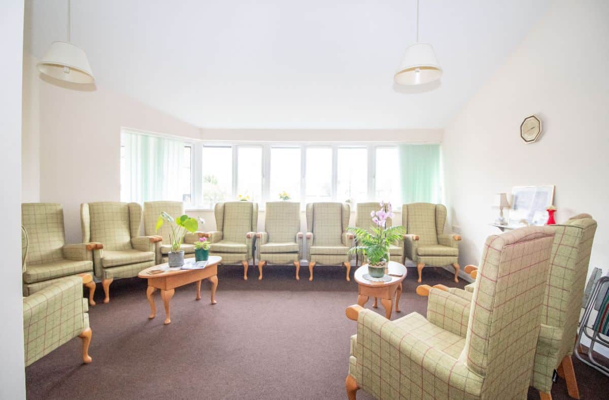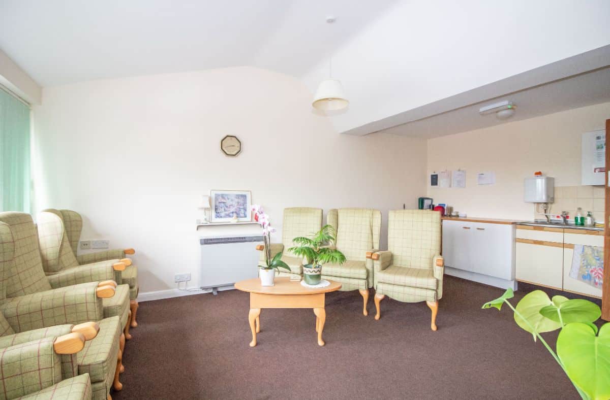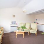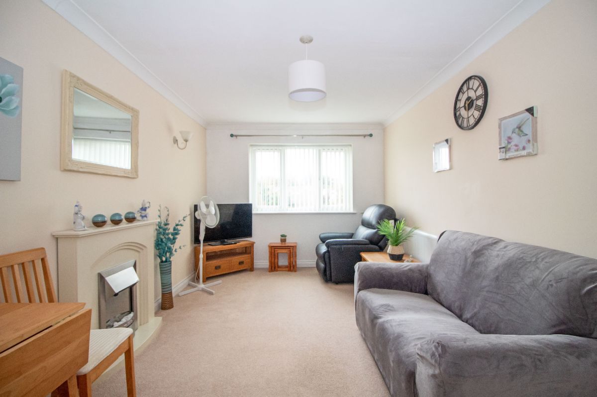 Electric fire with surround, double glazed window to rear aspect, wall mounted electric heater, coved and smoothed ceiling, emergency alarm pull cord, opening to kitchen.