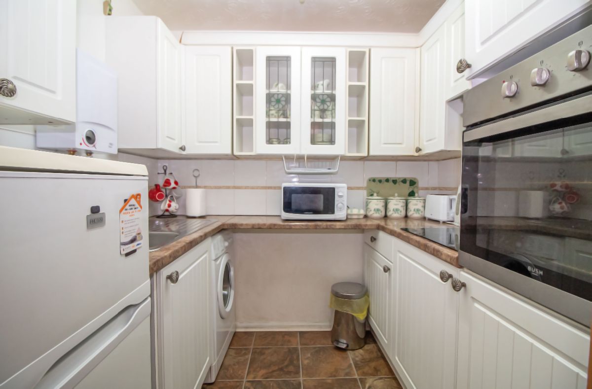 Modern matching range of wall and base units complemented with work surfaces over incorporating stainless steel sink unit with mixer tap and drainer, space and plumbing for freestanding washing machine, space for free standing fridge / freezer, electric hob with extractor canopy over, eye level electric oven, wall mounted hot water dispenser, tiled flooring and to principle areas, textured ceiling.
