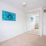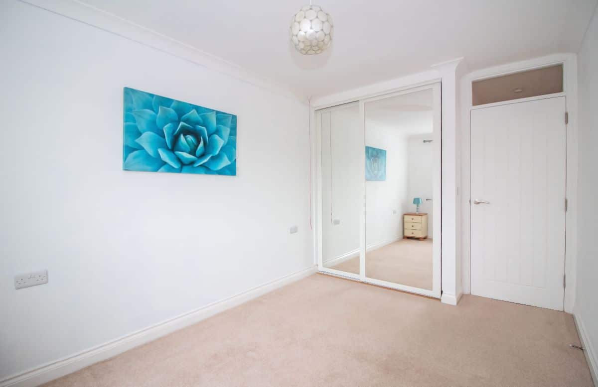 Double glazed window to rear aspect, mirror fronted fitted wardrobe cupboard with shelving and hanging rail, wall mounted electric heater, emergency alarm pull cord, coved and smoothed ceiling.