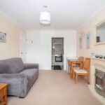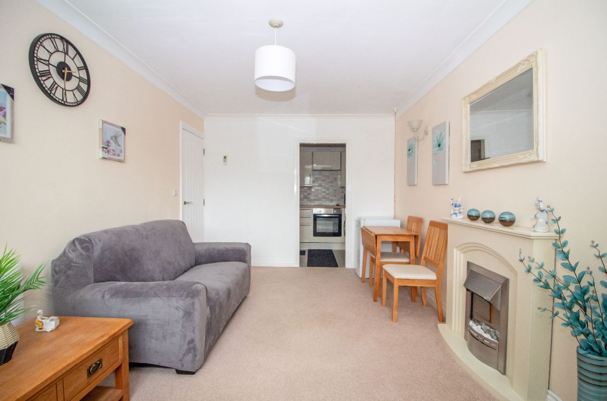 Electric fire with surround, double glazed window to rear aspect, wall mounted electric heater, coved and smoothed ceiling, emergency alarm pull cord, opening to kitchen.