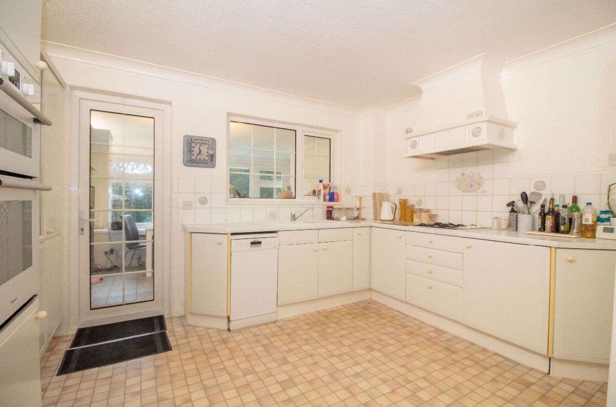 Matching range of wall and base units complemented with work surfaces over incorporating 1½ bowl sink unit with mixer tap and drainer, four ring gas hob with extractor canopy over, space and plumbing for dishwasher, space for fridge / freezer, eye level double oven, double doors to airing cupboard, tiled splashback, double glazed Georgian style window to rear aspect, double glazed door to rear aspect and access to breakfast / utility room, coved and textured ceiling.