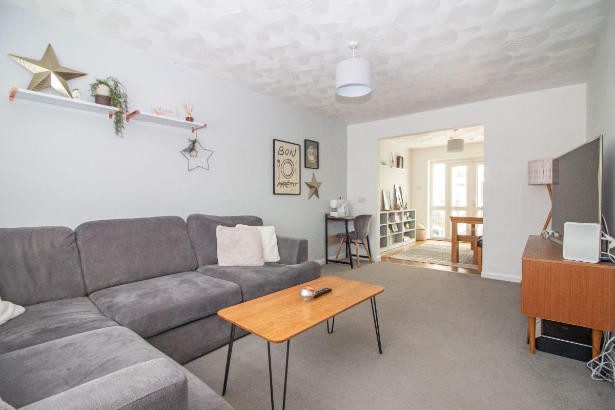 Double glazed lead light effect bow window to front aspect, radiator, textured ceiling, archway to dining area.