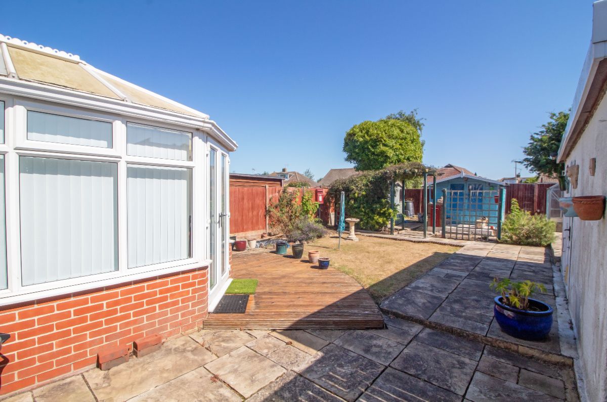 The frontage is predominantly shingled for easy low maintenance with driveway creating off road parking down the side of the property leading to the garage. Gated side access leads to the rear garden which boasts both decked and patio seating areas with the addition of tended lawn. Timber summer house, timber garden shed and greenhouse all to remain. Panelled fencing complements the side and rear boundaries, personal door leads to the garage.