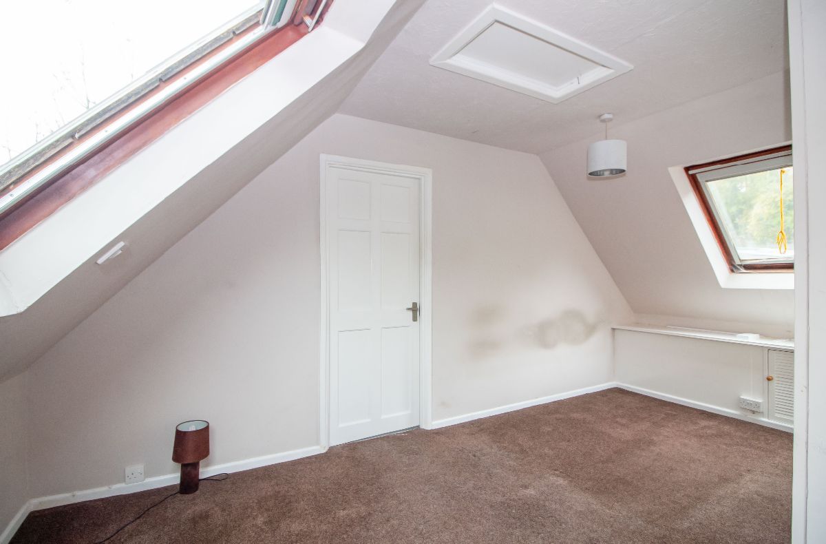 (Floor measurements). Velux style windows to front and rear aspects, two radiators, access to eaves storage, walk in storage cupboard with shelving, access to loft area, fitted wardrobe cupboard.