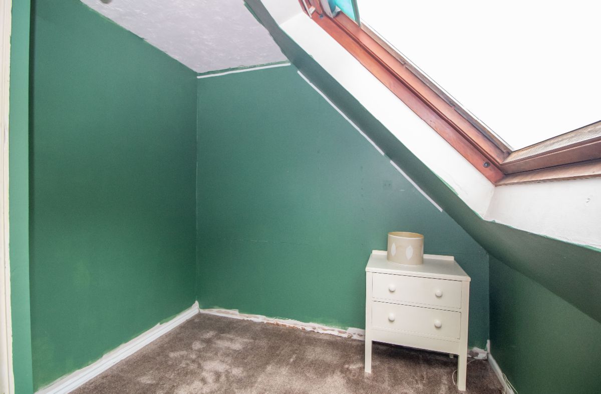 Velux style window to rear aspect, textured ceiling.