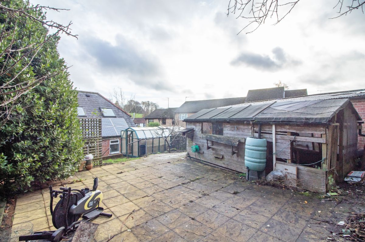 The frontage boasts dropped kerb providing access to the driveway which can accomodate minimum 2 x vehicles with gated access leading to the remainder of the front and pathway to the front door, mature hedgerow and brick wall serving the front boundary for privacy. Gated side access leads to the rear garden with steps leading to the raised terraced, timber garden shed / workshop and greenhouse to remain, panelled fencing and brick wall serve the side and rear boundaries with fitted external storage cupboard attached to the rear of the property with shelving and power point.