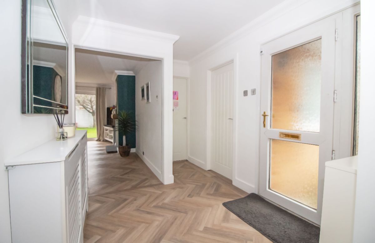 Double glazed front door and double glazed obscured side panel to entrance hall.