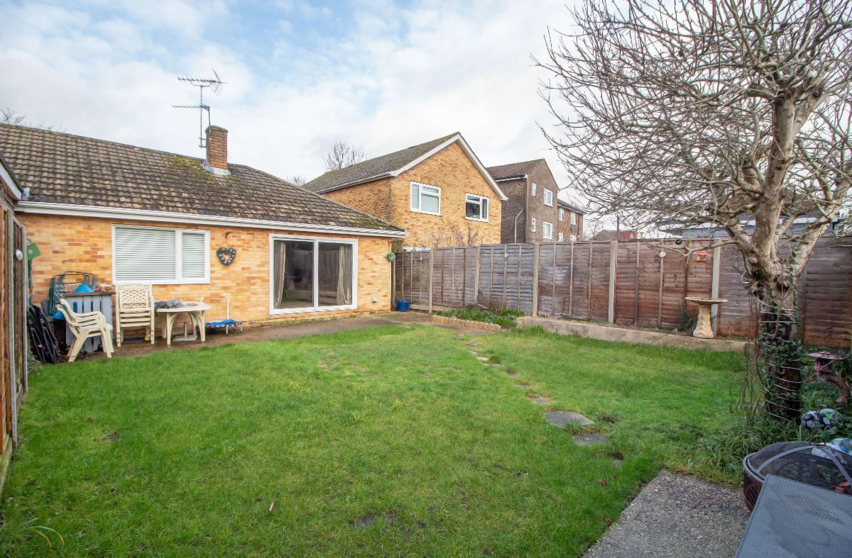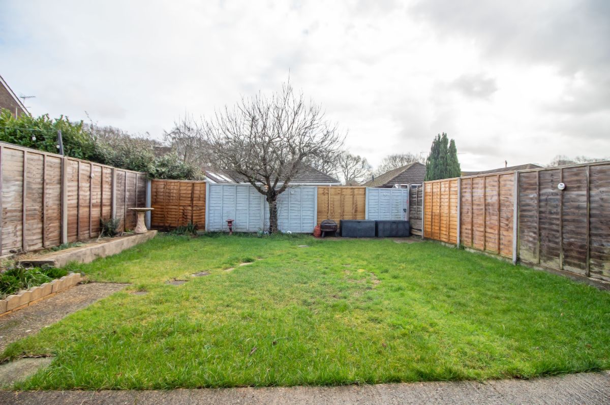 The frontage is predominantly gravelled, providing off-road parking and access to the garage. Gated side access leads to the rear garden, which enjoys a desirable south-easterly aspect and is mainly laid to lawn. Panelled fencing defines the side and rear boundaries, and an outdoor tap is conveniently located along the side of the property.