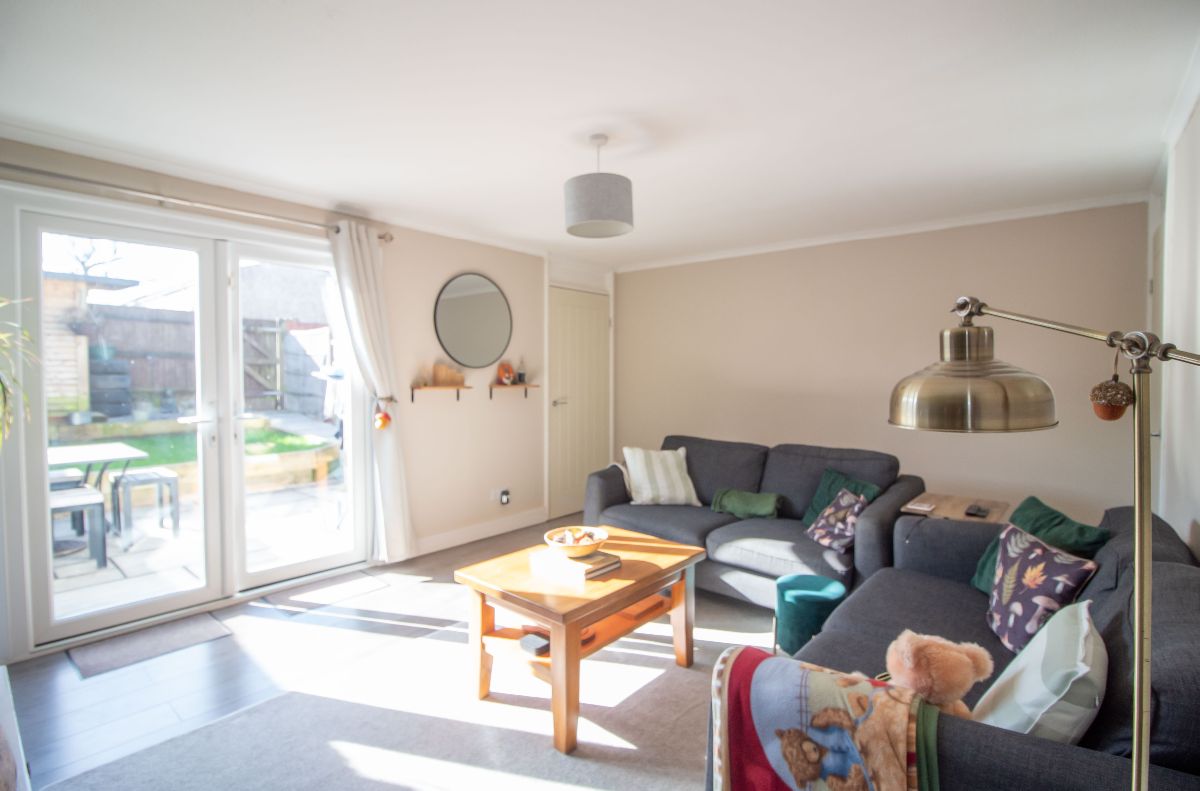 Double glazed French doors and double glazed side panels to rear aspect overlooking South / East aspect rear garden, laminate wood effect flooring, radiator, door to rear lobby.