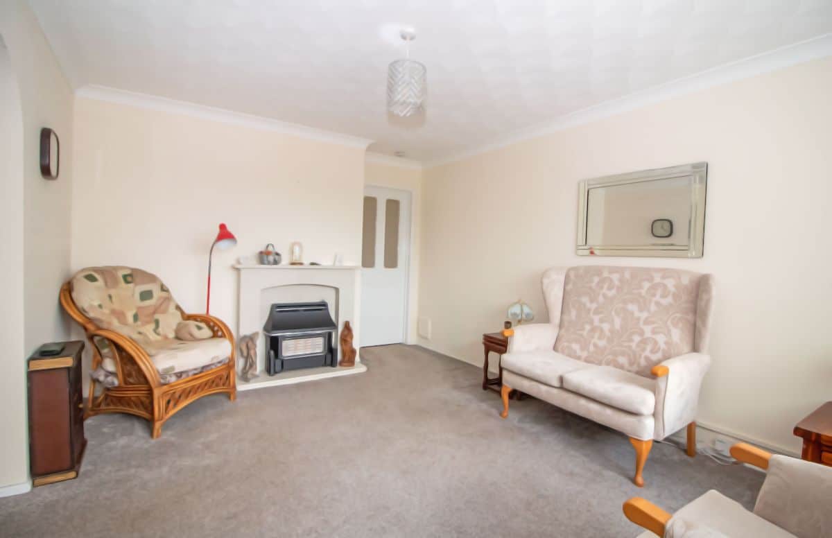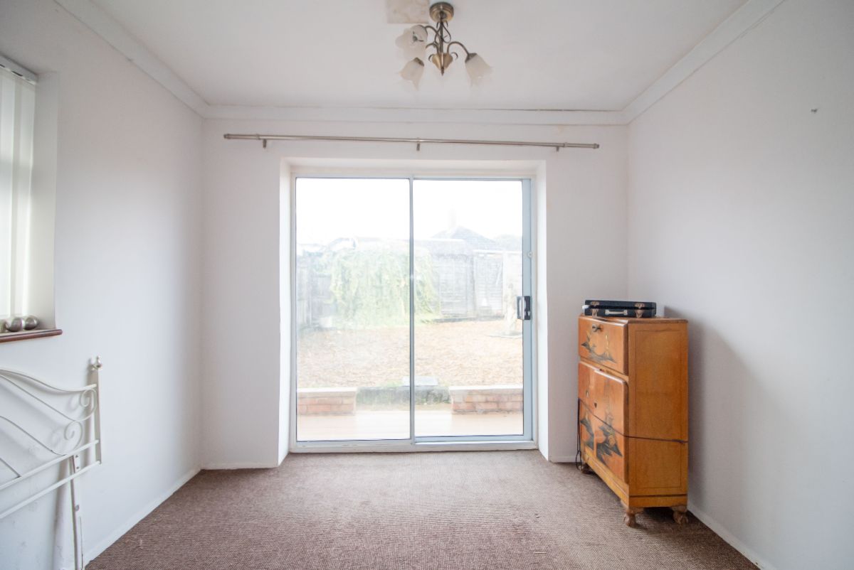 Double glazed sliding patio doors to rear aspect / garden, radiator, double glazed window to side aspect, coved and textured ceiling.